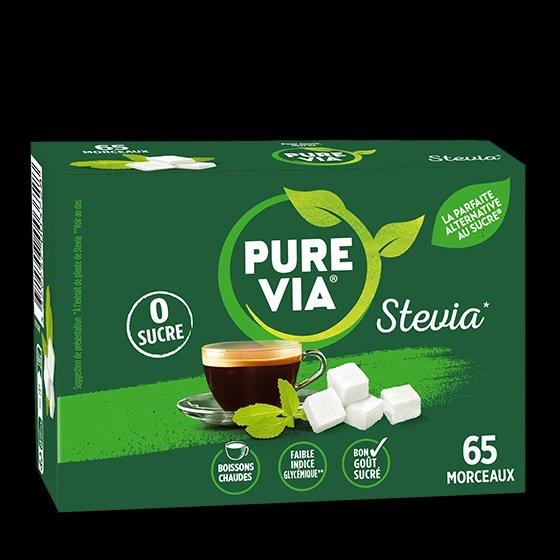 Découvrez les morceaux Pure Via® Stevia*, une alternative naturelle et saine, qui allie une texture semblable au sucre traditionnel à une saveur délicieusement sucrée. Parfait pour sucrer vos boissons chaudes préférées facilement et sans culpabilité.